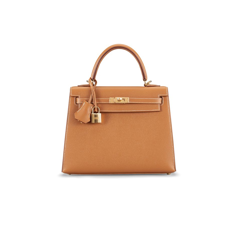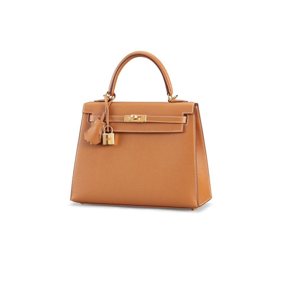 駝色EPSOM牛皮28公分外縫凱莉包附金色金屬配件