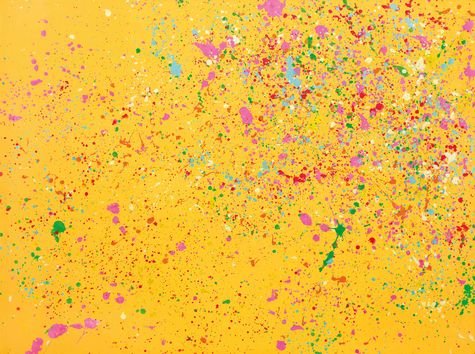 此件作於1973年的大幅油彩畫《萬紫千紅》在鮮黃色的背景上,潑彩揮灑的粉紅、青藍、黛綠及橘橙等纓絡垂旒、接踵而至,宛如置身春曉般,畫面盡是生趣,豐沛的情感間隱含東方留白的寫意精神,淡雅的底色如大地般滿滿的春意盎然。作品盡見丁雄泉火燙炙熱的情緒表現,以及瀟洒放盪的大幅度暢快筆觸,質感隨興而厚實,不禁令觀者聯想到其眼鏡蛇畫派。他純熟地運用美國抽象表現主義的潑灑和滴彩的技法,使絢爛繽紛的顏料鋪溢得虛實有致,洋洋灑灑地佔據整幅畫面。不難看出其響應附和,並轉化傑克遜·波洛克(Jackson Pollock)的繪法,他當時亦受「普普藝術」平面化地處理大塊空間的影響。可見他在汲取西方藝術養份的同時,試圖開創建立其獨特的喧鬧紛雜,卻又洶湧澎湃的藝術語言。